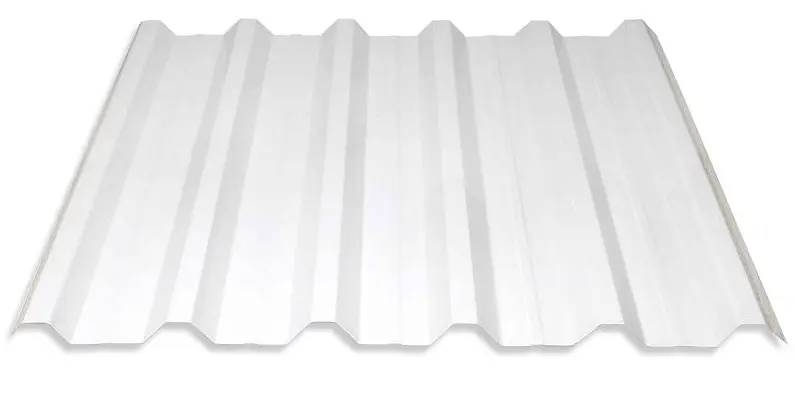 Telha em material translúcido, que permite a passagem de luz natural. Apesar de serem transparentes, as telhas translúcidas são projetadas para serem duráveis e resistentes.